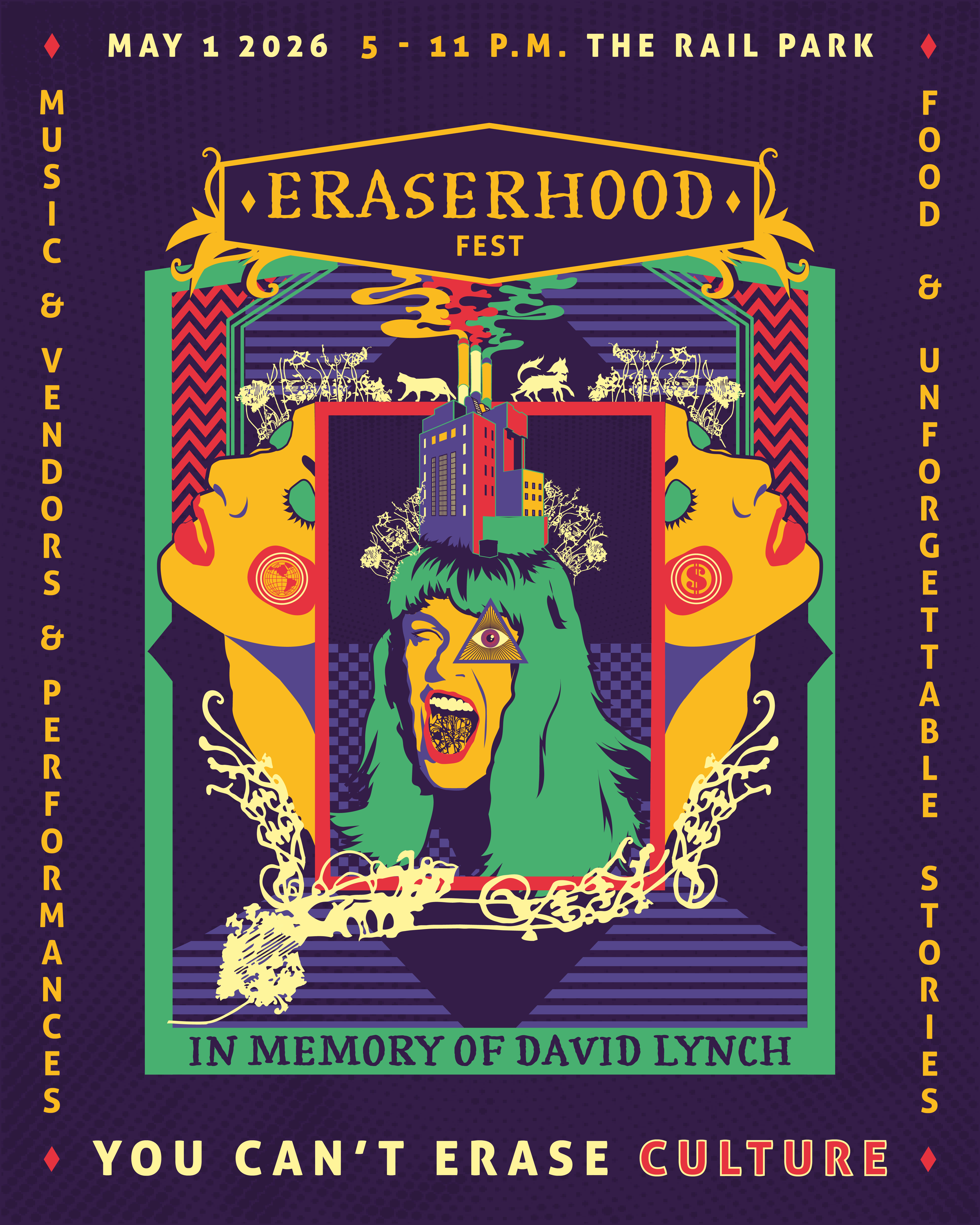 Eraserhood Fest will bring the area’s rich history and unique character to life through a dynamic mix of local music, cultural activities, food, art, and interactive experiences. With David Lynch’s legacy at the heart of the festival, the event will honor the neighborhood’s past while celebrating its present and future.